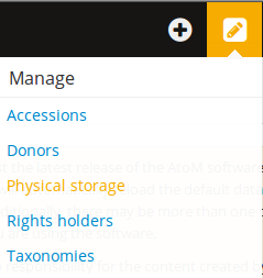 Physical storage can be browsed by authenticated (logged in) users through the pencil Manage menu: