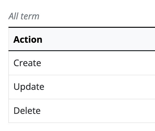 In AtoM, users and groups can be granted or denied access privileges that enable them to Create, Update or Delete terms and taxonomies within their repository. Terms are the values that make up controlled vocabularies in AtoM; they are grouped into taxonomies that can also be added, edited, and deleted.
