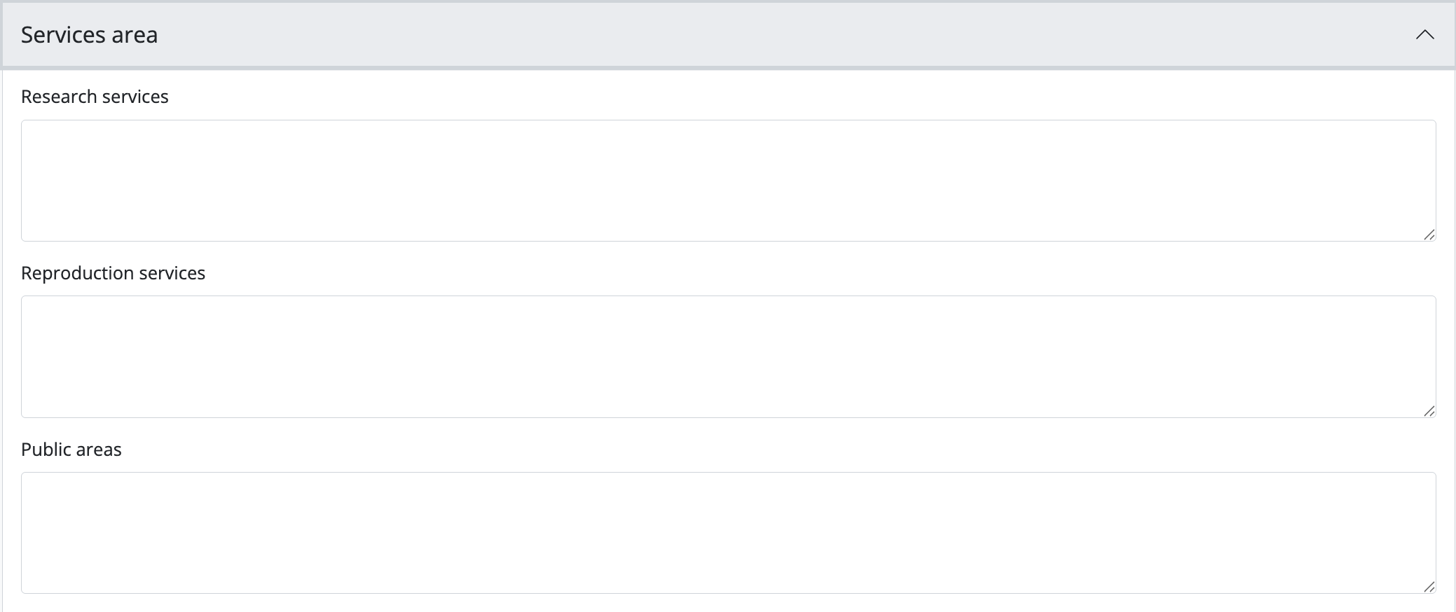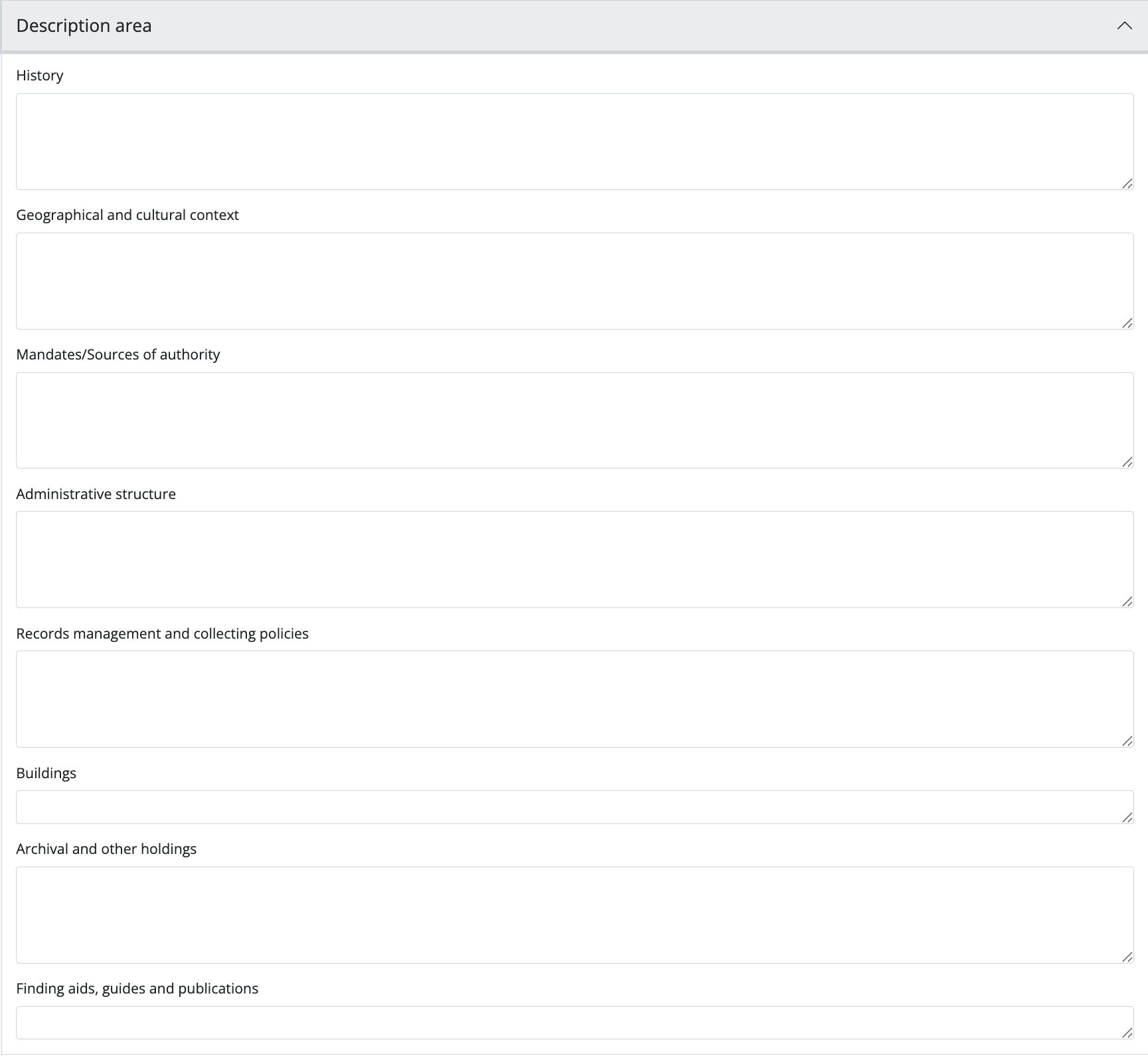 On this page you will find a description of the fields used when entering archival institution data into AtoM’s ISDIAH-based template