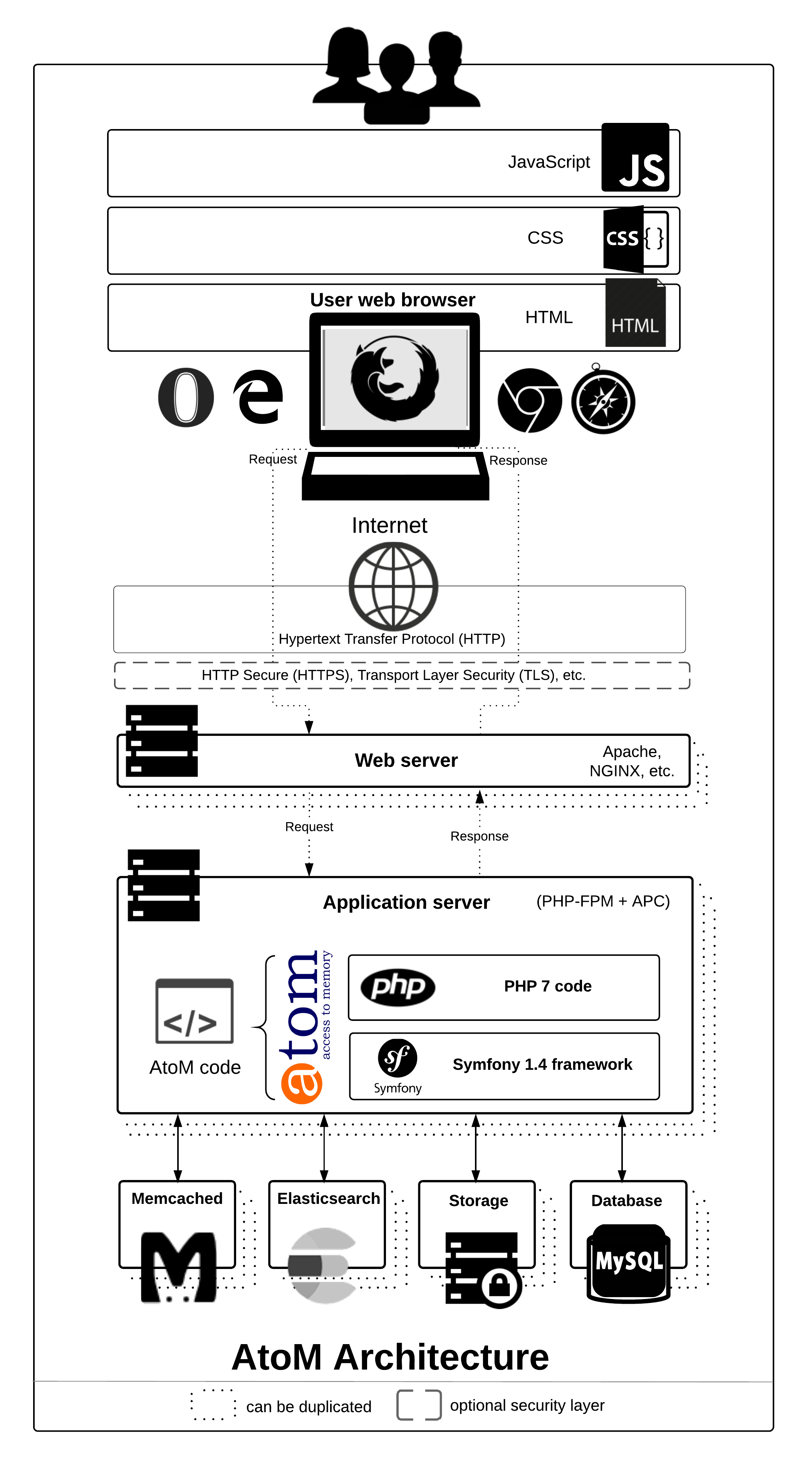 A diagram of AtoM's technical architecture