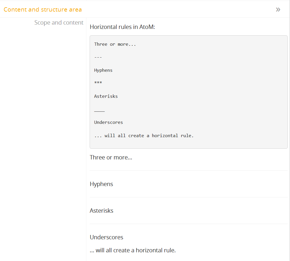 content. Once parsed by the Markdown library in AtoM, these are rendered for