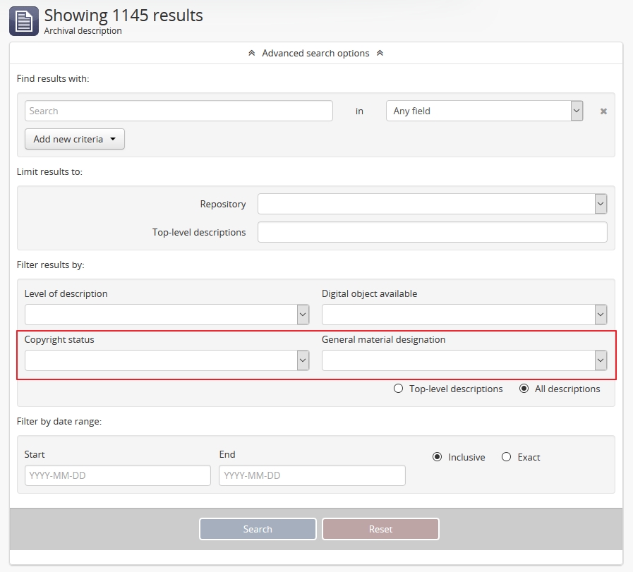 For more information on working with archival descriptions, see: Archival Descriptions. For information on searching, browsing, and navigating in AtoM, see: