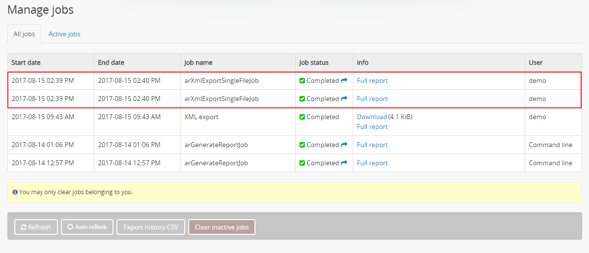 6. In the examples above, members of the administrator and editor user group can download both AIP packages and original files. Contributors can only download AIPs and translators can only download original files. Members of other user groups (e.g. authenticated) do not have any download permissions and will not see a download link or icon next to the AIP UUID or File UUID.