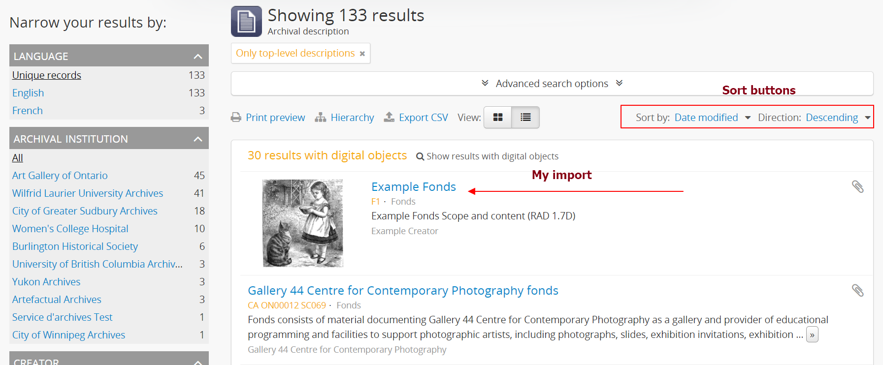 can be updated via import. Only those fields that are found in AtoM’s primary