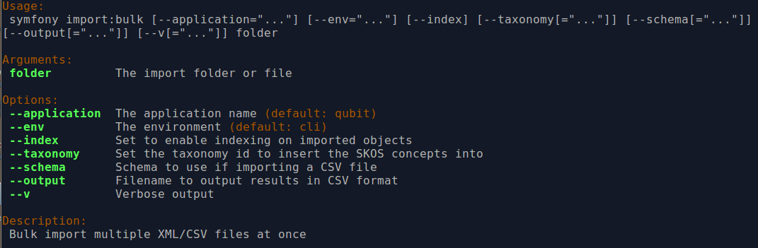 php symfony import:bulk --v=1 /path/to/my/importFolder