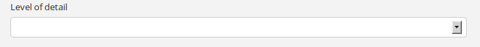 AtoM has a drop-down menu using values drawn from the description detail levels taxonomy; by default in AtoM this drop-down is populated with the following terms: