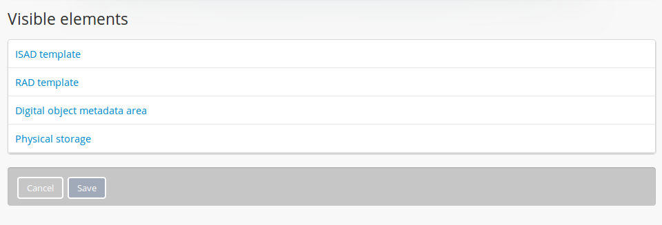 Visible elements enables an administrator to “hide” specific fields in the database from the public (i.e., unauthorized users, or users who are not logged in). It also allows administrators to hide the Physical storage area.