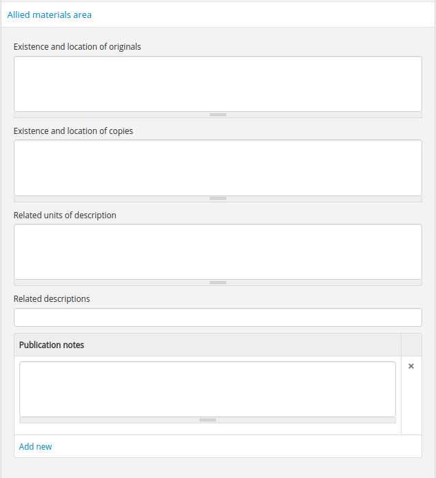 This widget has been added to help improve workflows when creating new descriptions via the user interface. When entering descriptions through the form, users can add new child records in this area while creating a parent record.