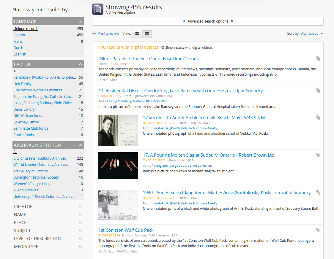 See Search for archival descriptions for more information on using the search results page.
