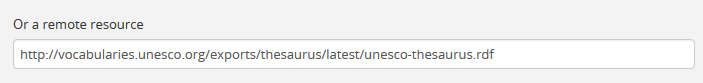 2. To upload remote SKOS RDF resource from an online source, enter the URL into the Remote resource field. Remember, valid URLs must begin with http:// or https://, and end in a .rdf file extension.