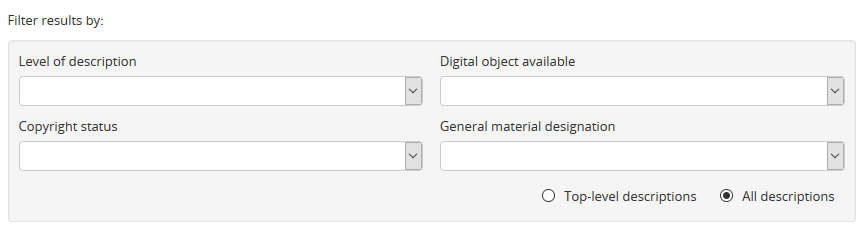 - Level of description: This filter will limit the returned search results to a specific level of description.