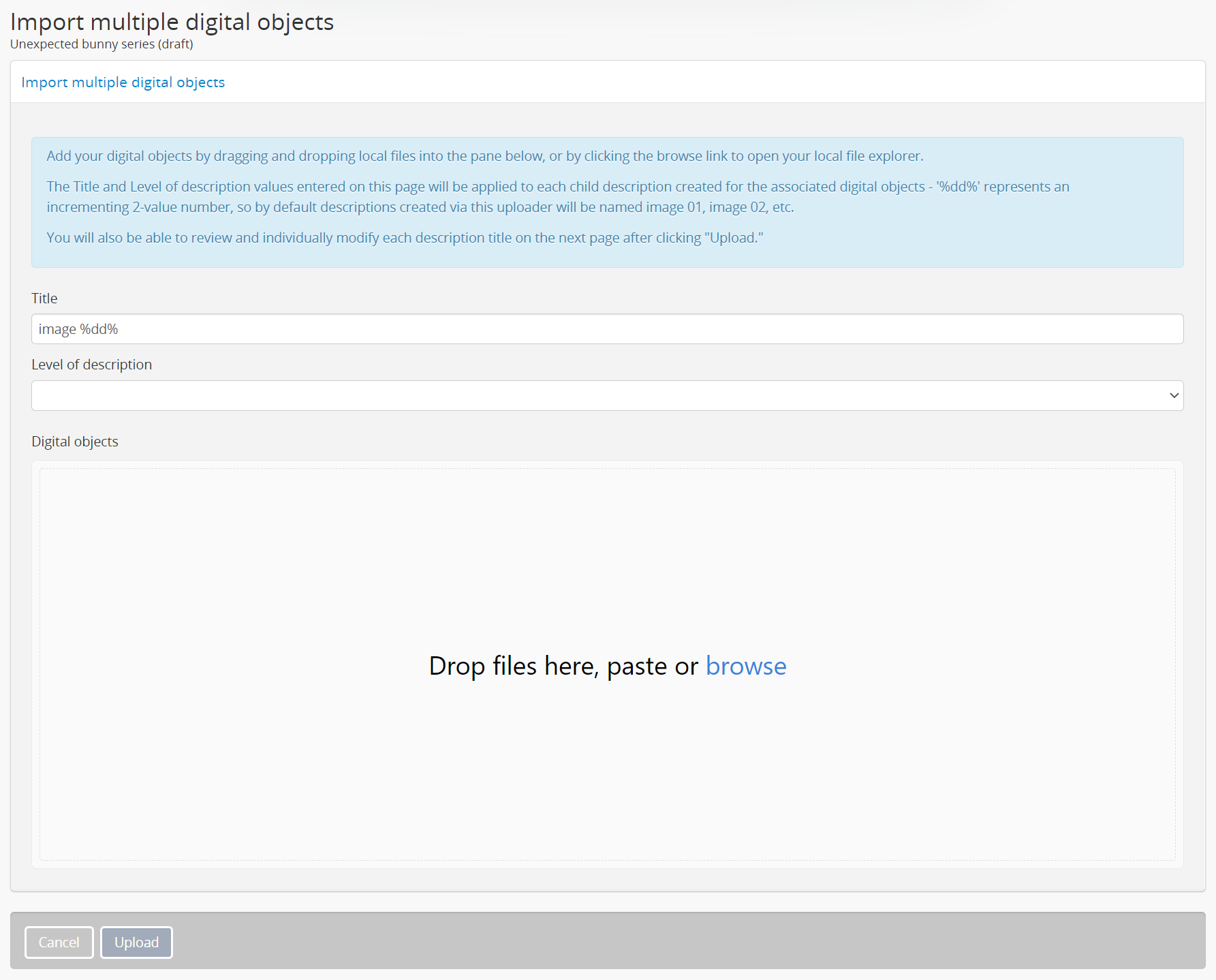 Upload multiple digital objects to archival descriptions