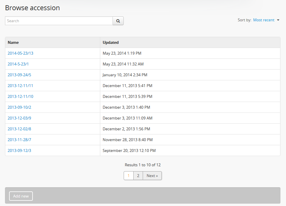 Users who have recently migrated to AtoM, or are catching up on a backlog of accessions, may need to add new accession records that have older dates encoded in the accession number. There are two ways this can be done in AtoM - however, both require that a user have administrator access to the application.