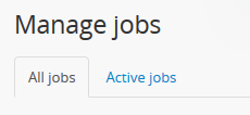 The Jobs page also includes a tab that allows users to view only those jobs that are currently still being executed (e.g., a status of “Running”). This can be useful when a large number of jobs are being executed simultaneously, and/or the list of jobs has not been cleared in some time. Click on the blue hyperlink to switch the view from “All jobs” to “Active jobs”. AtoM will refresh the page and the table will be limited to the selected view.