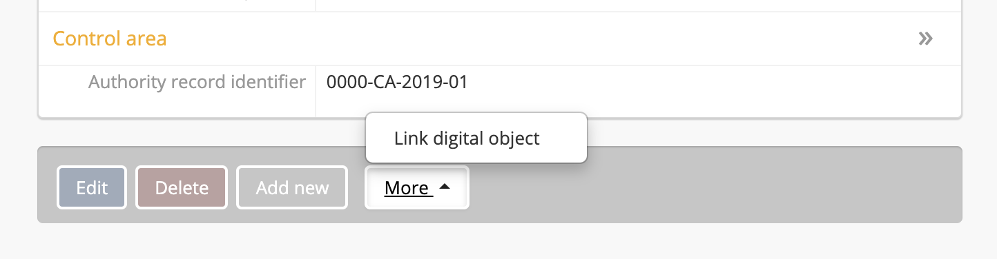 1. When you are on the view page of the related description, scroll down the button block at the bottom of the page, and in the “More” menu, select “Edit digital object”