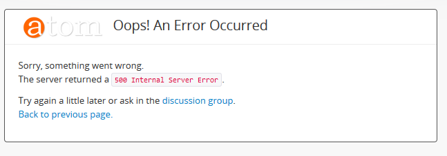 An image of a 500 error message