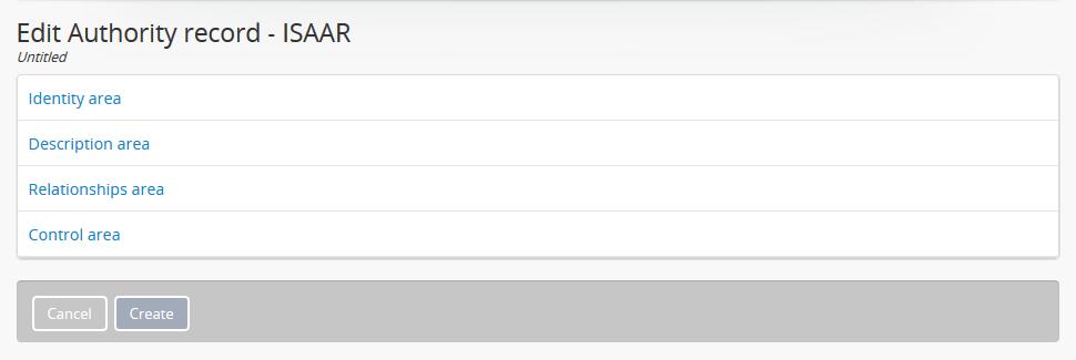 In AtoM, the data elements used to describe authority records are based on the ICA’s International Standard Archival Authority Record for Corporate Bodies, Persons and Families, or ISAAR(CPF).