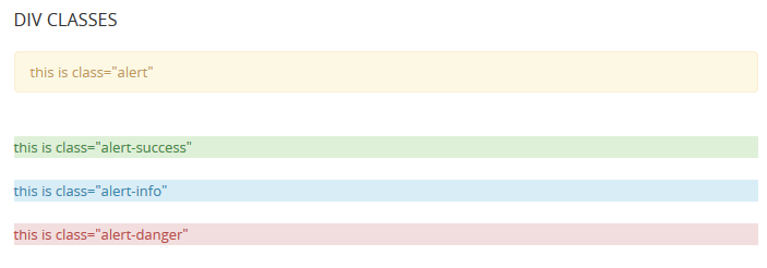 Other Bootstrap alert classes that can be used to style containers include alert-success, alert-info, and alert-danger: