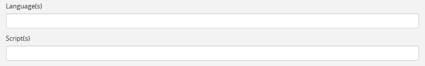 Click on the desired field and begin to type the name of the language or script. AtoM will auto-suggest as you type. When the correct name appears in the field, click on it to add. There is no limit to the number of languages or scripts you can add.