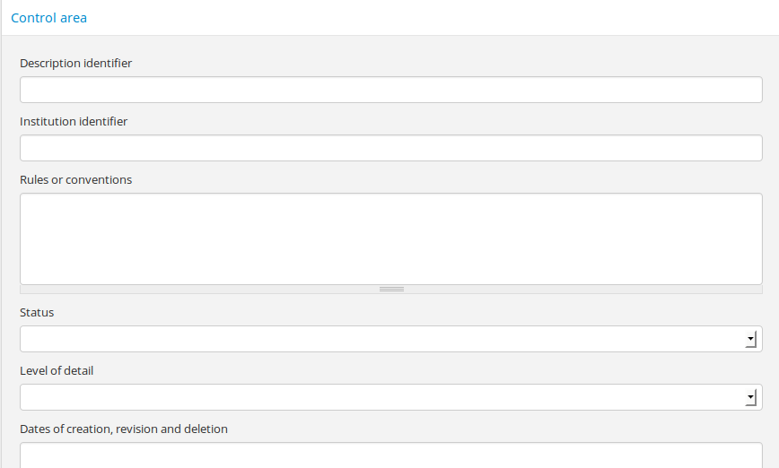 The data entry fields for the Control area. More fields continue below the screen shown.
