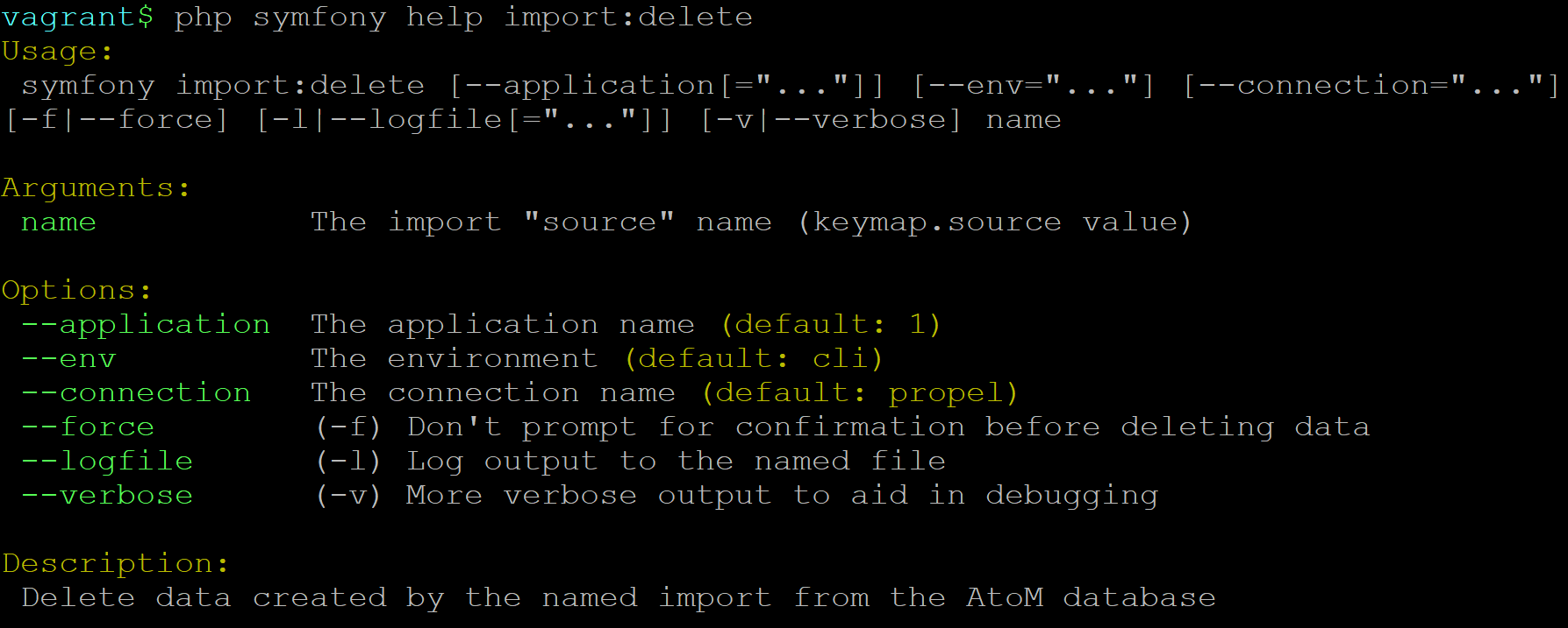 The following will outline the options available for command-line imports and exports in AtoM.