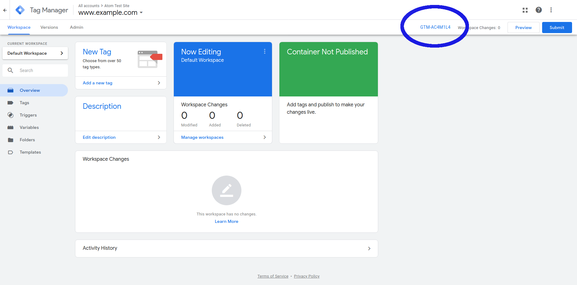 After you check that the tag works you can publish your workspace by clicking the “Submit” button in the Google Tag Manager Container dashboard. Set a name and description for the version changes and click the “Publish” button.