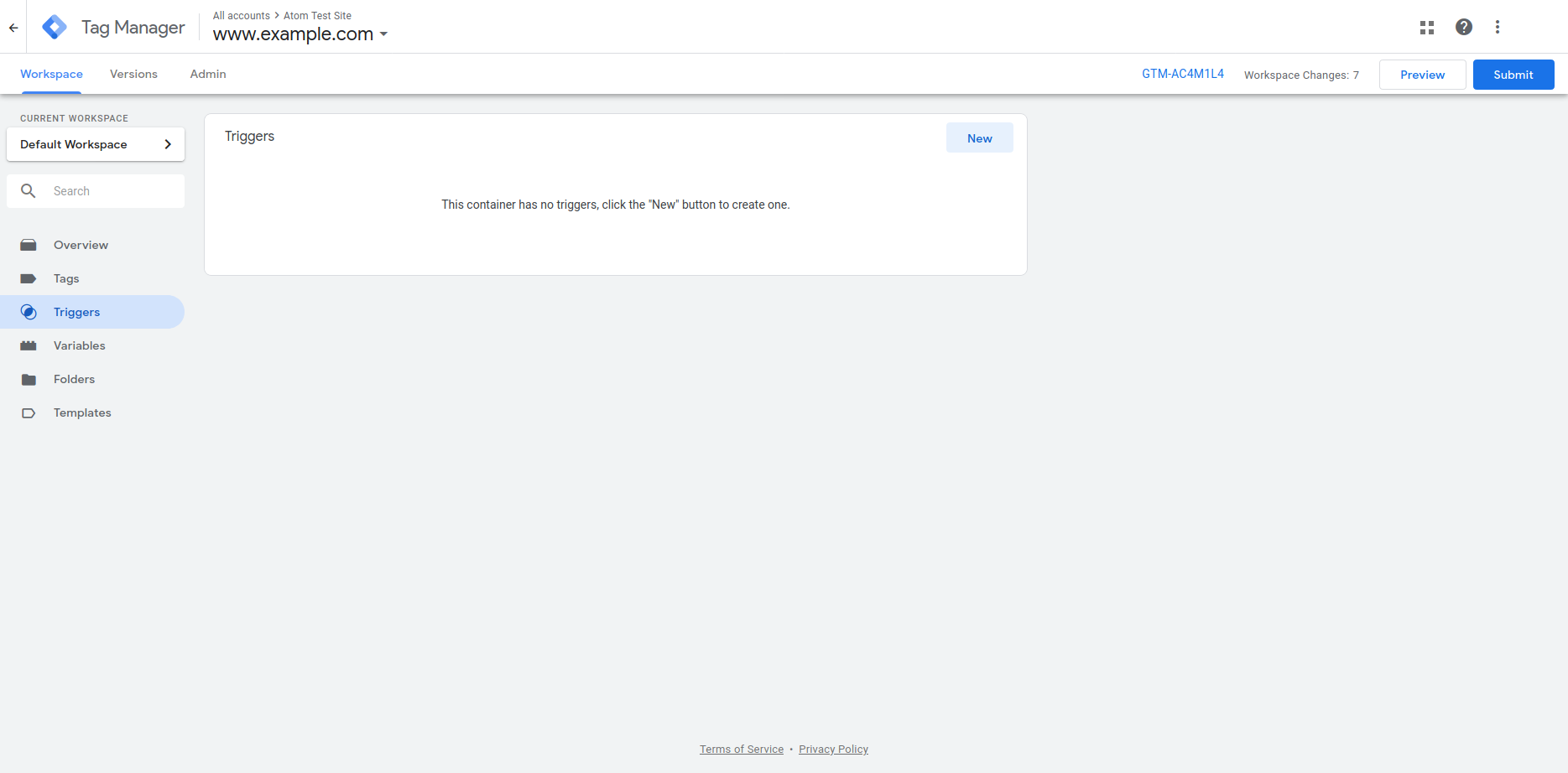 - Click “Triggers” in the left sidebar, and the “New” button in the Triggers section.