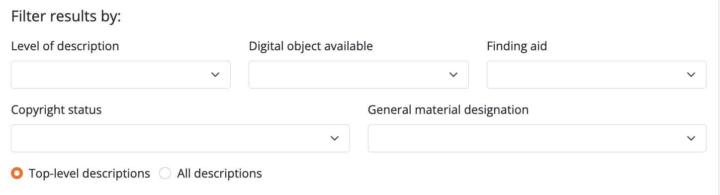 - Level of description: This filter will limit the returned search results to a specific level of description.