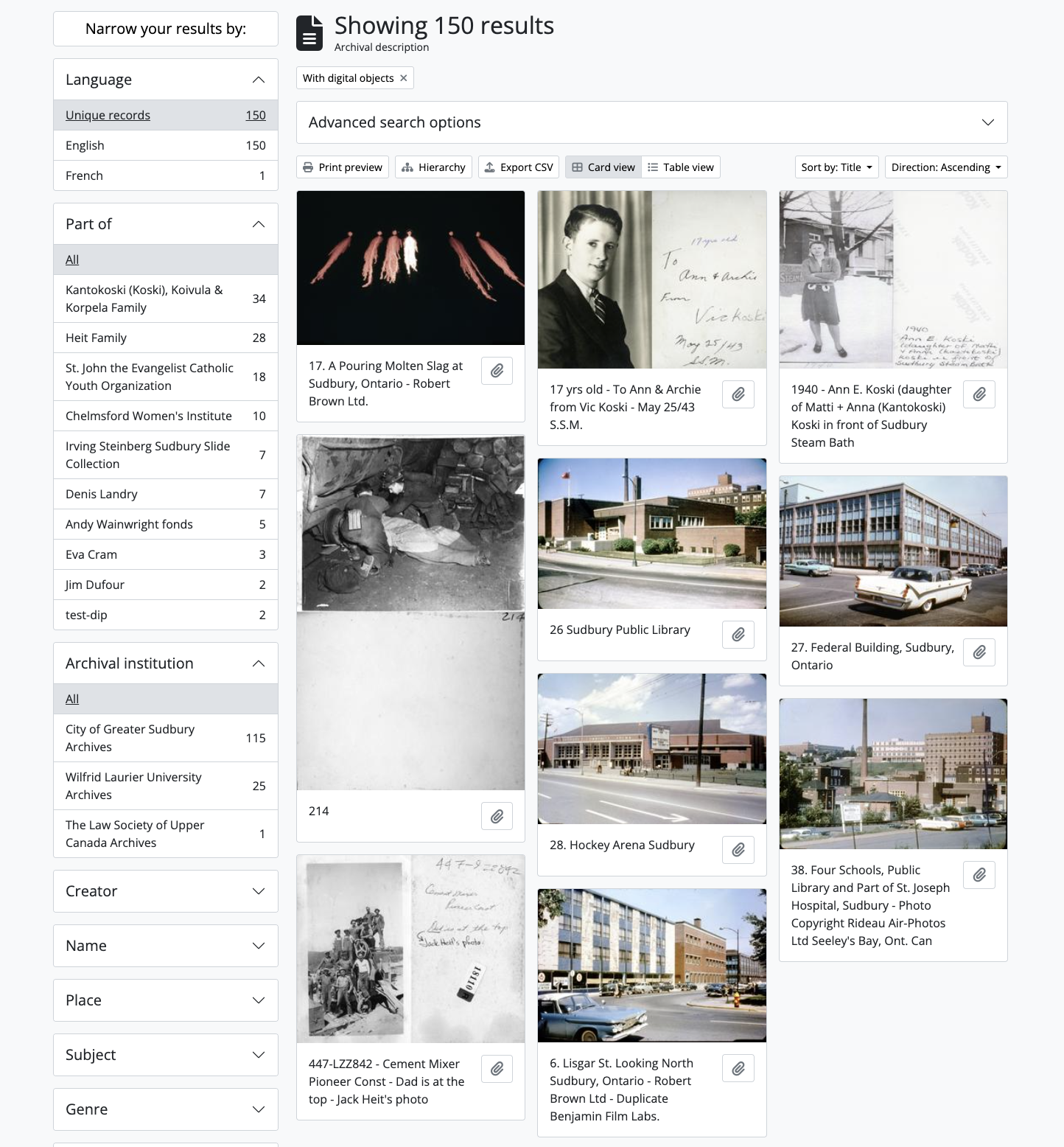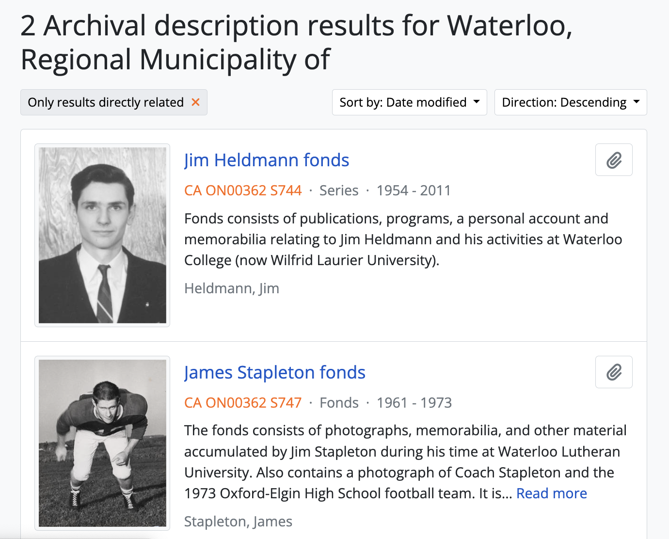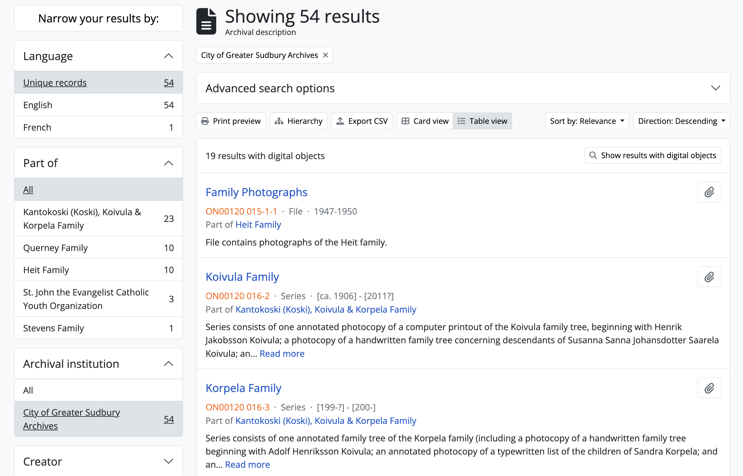 - Description - if a scope and content note has been included in the archival description, its first 2-3 lines will be visible here for greater context.