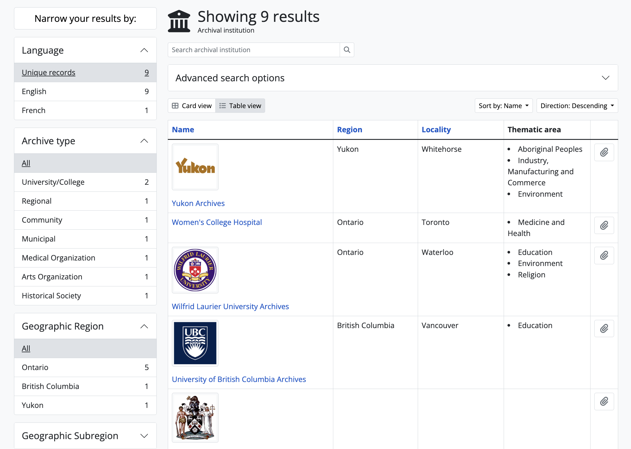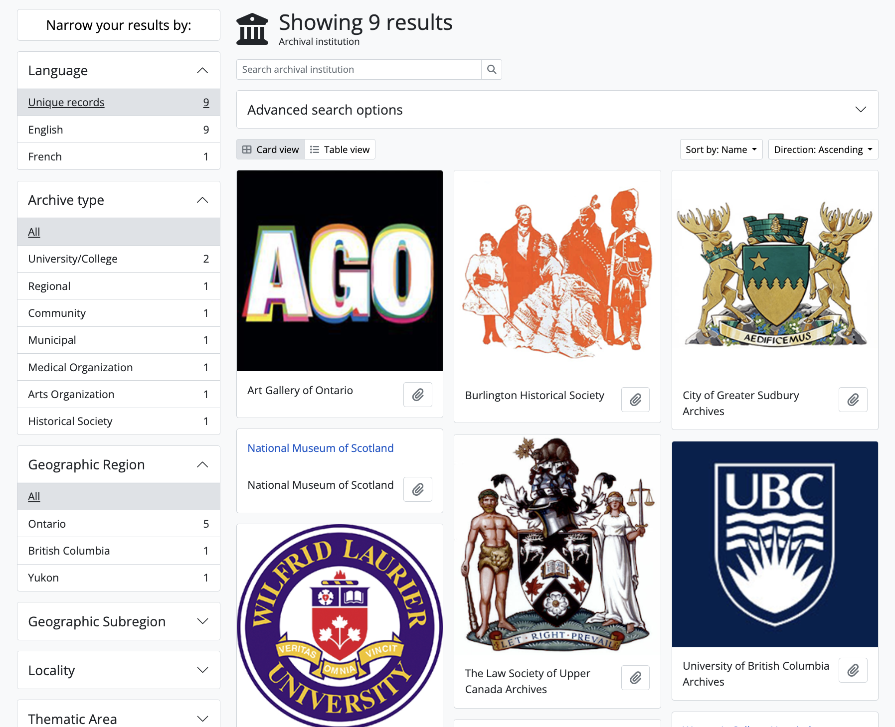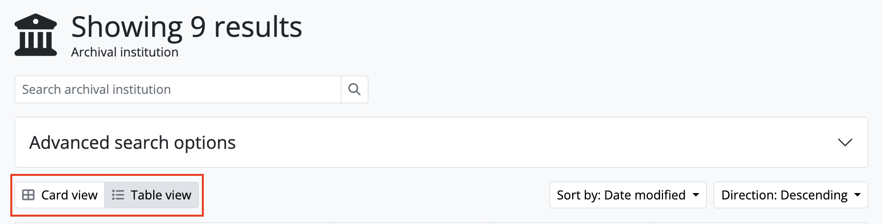 - By clicking the “All” link in the Archival institution facet filter - this also removes the repository filter. AtoM will reload the Browse page without the institution block and show all results.