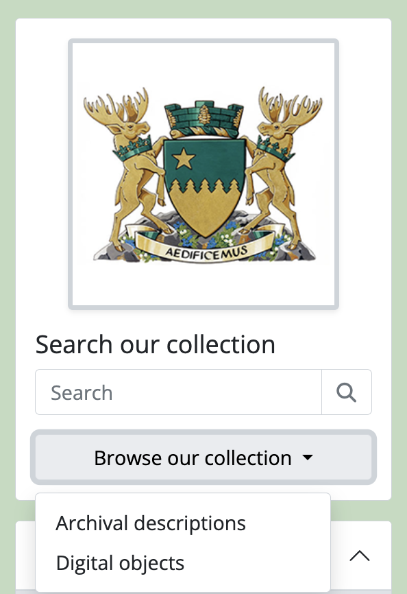 Additionally, the institution block introduces a dedicated browse menu for the holdings of the archival institution. The links in this menu will take users to browse pages that are already limited to the holdings of the current repository.