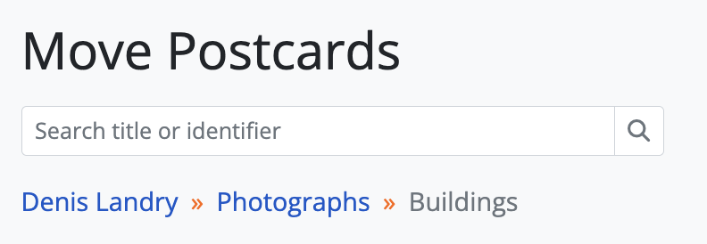 - When moving archival descriptions (see: Move an archival description), a breadcrumb trail is used to indicate where in a hierarchy the Move browse results are currently showing.