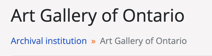In addition to providing a customized look and greater context when viewing related archival descriptions, the institutional logo also acts as a navigational element: the logo (or its placeholder if no logo has been uploaded) operates as a hyperlink to the related archival institution. This allows a user to quickly navigate to the institution’s record to find out its location, opening hours, etc. as well as to view a list of other holdings held by the archival institution.