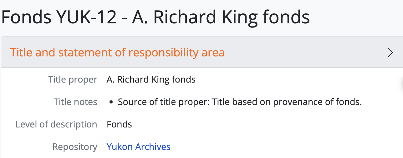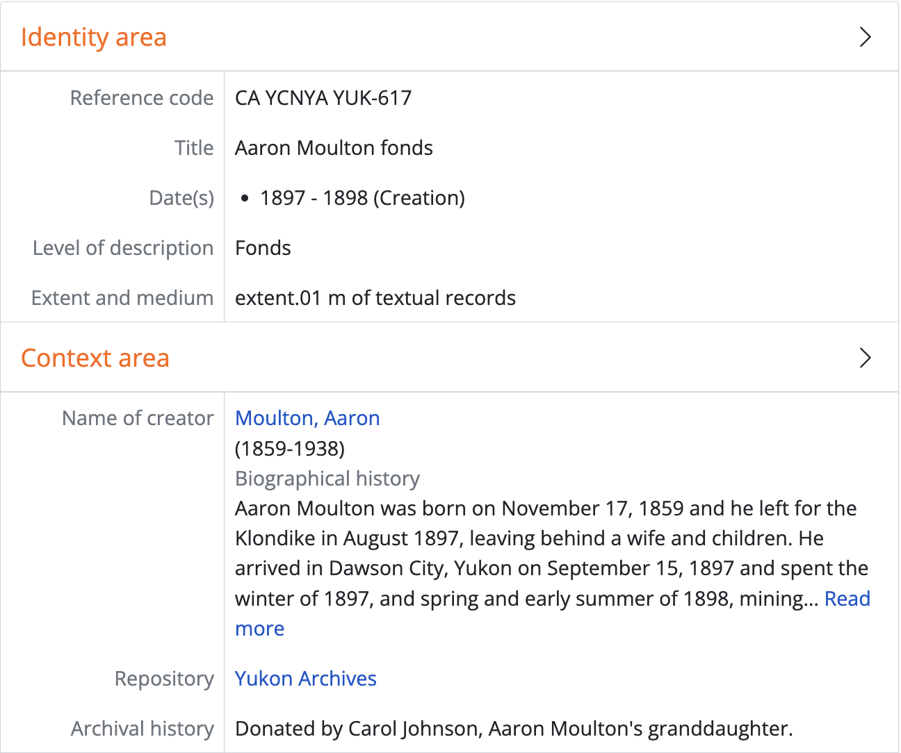 More: Only available on archival descriptions and accessions. Reveals