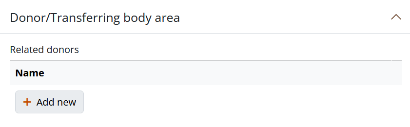 In the Edit accession record screen, under the Donor/Transferring body area you can enter the names and contact information for related donors using the donor dialog. Click the “Add new” button to open the Donor dialog and add a new donor.
