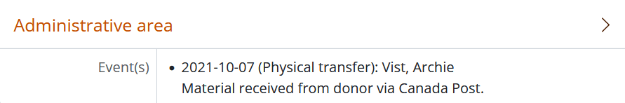 Example event type terms, taken from the Canadian Archival Accession Information Standard (CAAIS):