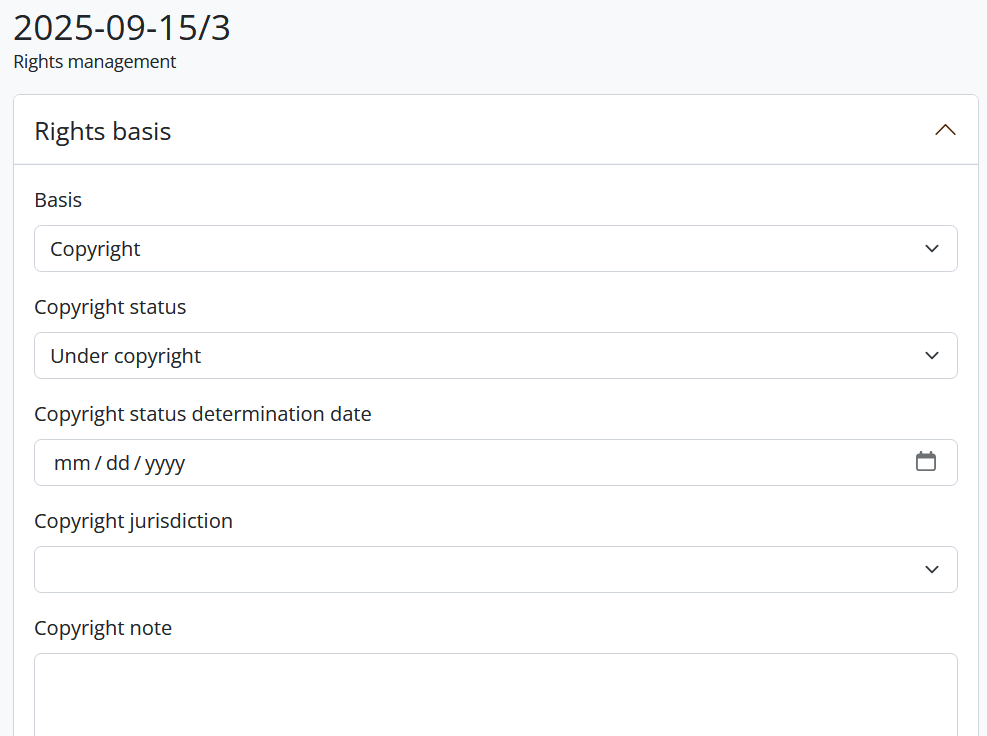 - To save your changes, click the “Save” button in the button block. AtoM will reload the page in view mode, with all changes saved, so you can review your work.