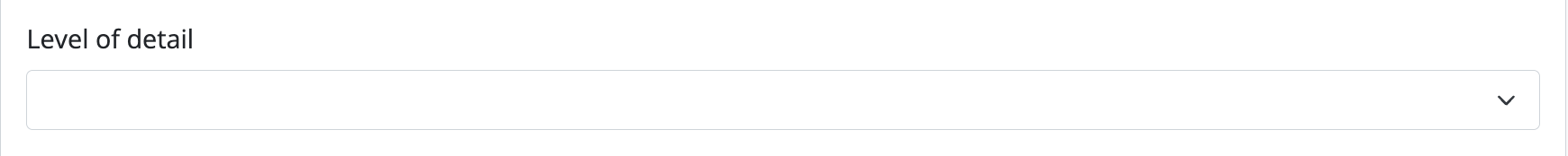 AtoM has a drop-down menu using values drawn from the description detail levels taxonomy; by default in AtoM this drop-down is populated with the following terms:
