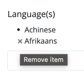 To remove a language or script already added, hover your cursor over the bullet next to the language/script. The bullet will change into an X - if you click the X, the language or script will be removed.