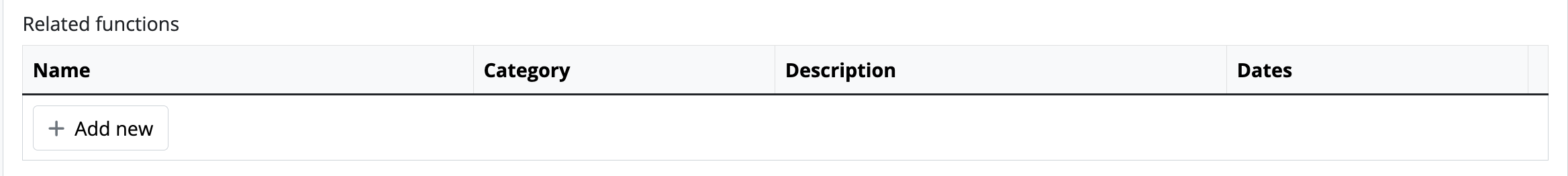 - In the “Relationships” information area of the function’s edit page, click the “Add new” button under “Related functions”.