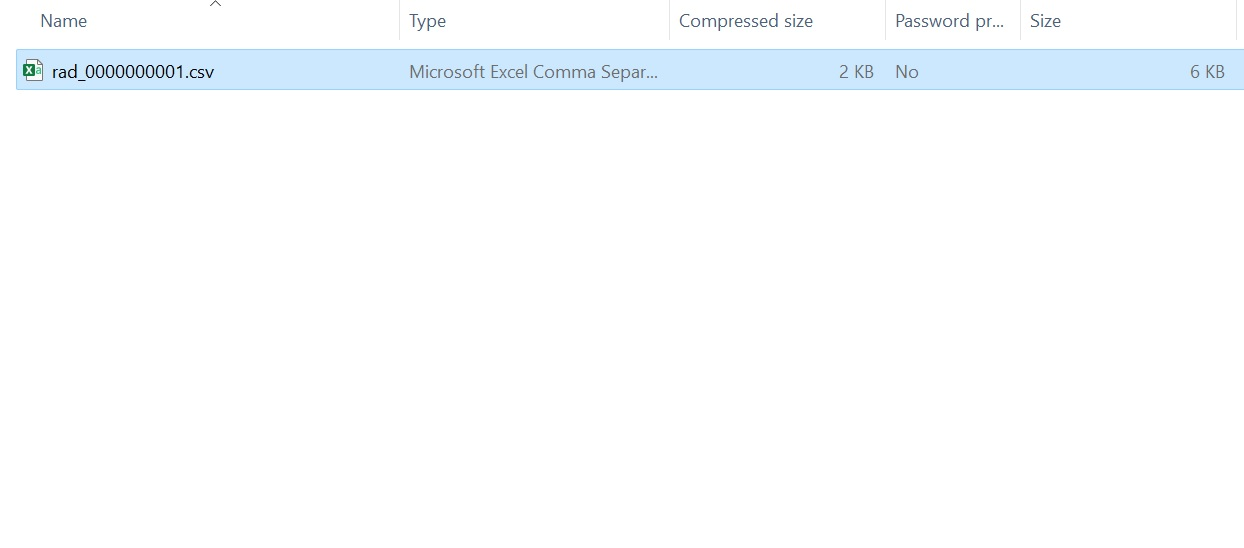 When the job is complete, click on the Download link in the “Info” column, and the CSV, compressed in a ZIP file, will be downloaded to your computer.
