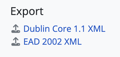 - On the view page of the top-level archival description for the hierarchy you wish to export, locate the Export links in the right-hand context menu.