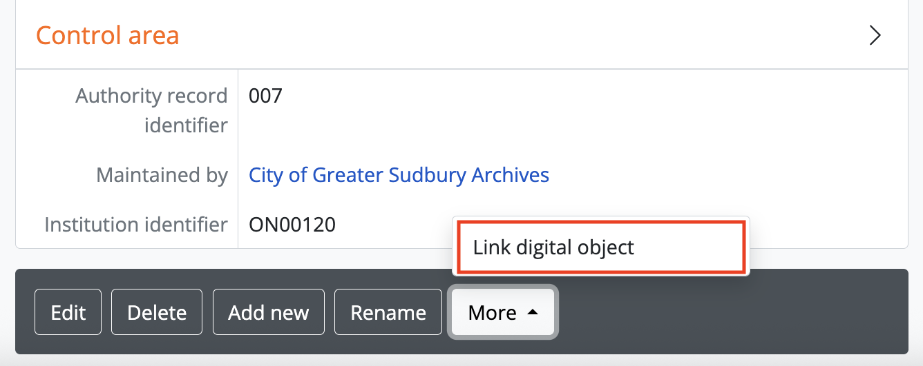 The process to link a digital object to an authority record is similar: