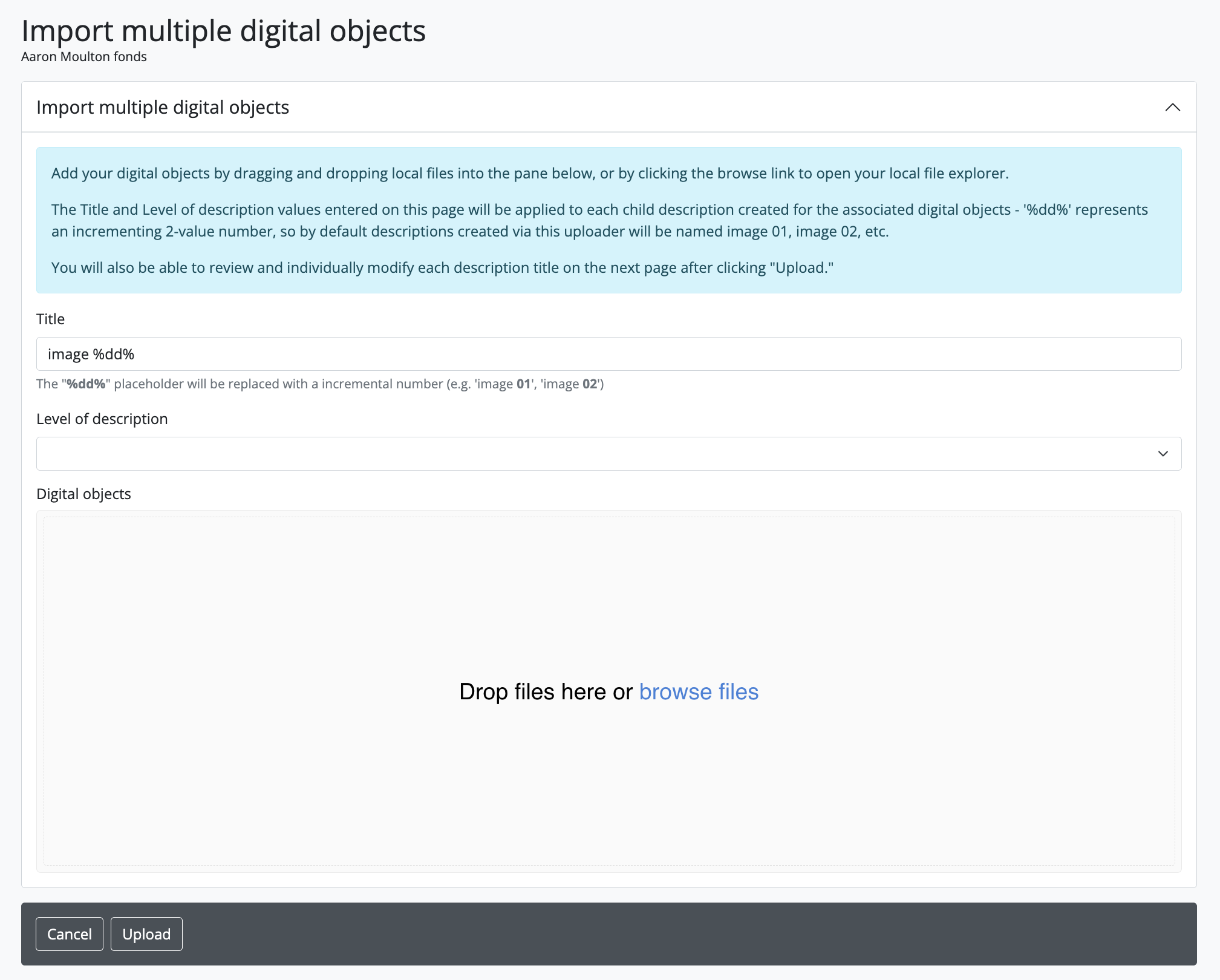 Upload multiple digital objects to archival descriptions¶