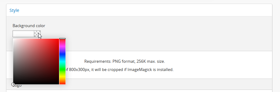 1. From here, navigate to the “Style” area, under the “Logo” field, click the “Choose file” button under the exisiting logo.