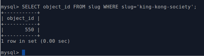 SELECT object_id FROM slug WHERE slug='your-slug-here';