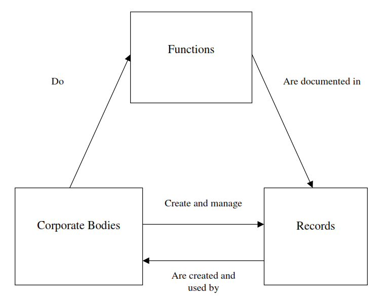From the ISDF, Appendix A: “Representation of the relationships of functions with corporate bodeis and archival resources”
