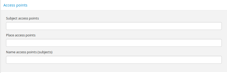RAD Rule “Choose provenance, author and other non-subject access points from the archival description, as appropriate. All access points must be apparent from the archival description to which they relate.” (RAD 21.0B) The values in this field are drawn from the Authorized form of name field in authority records. Search for an existing name by typing the first few characters of the name. Alternatively, type a new name to create and link to a new authority record.