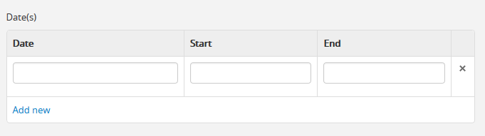 You can add multiple dates as needed. Click the “Add new” hyperlink to add another date row.