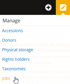 Access to the Jobs page functionality is dependent on your user role. See User roles, Manage user accounts and user groups, and Edit permissions for more information on managing user roles in AtoM.